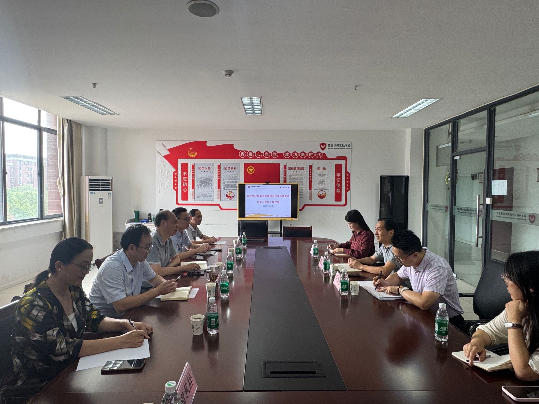 9月26日下午,人文与管理学院院长王国平带领心理学教研室团队一行6人,前往芜湖华师实验学校就共建中小学学生心理健康教育科研实践平台事宜进行深入探讨。芜湖华师实验学校党支部副书记戴启武及相关负责人热情接待了来访团队。
