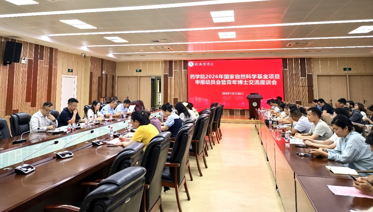 9月29日下午,药学院在四号实验楼二楼会议室召开2026年度国家级科研项目申报动员会暨青年博士交流座谈会。会议由药学院党委书记、副院长李娜主持。