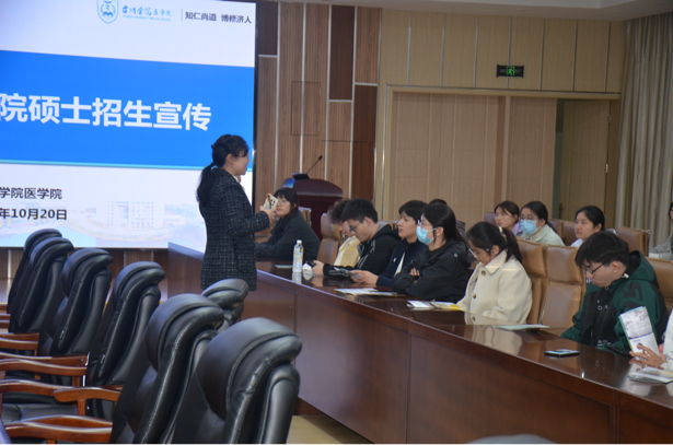 本次会议内容务实、信息丰富,使两校对合作方向与招生政策有了更清晰的把握。通过深入交流,不仅为校际之间的协作与人才共育搭建了广阔平台,也为我校学生创造了更多升学选择。双方将以此次活动为起点,持续深化交流合作,并为区域医学院校间的协同发展与研究生培养工作提供可借鉴的思路与经验。(华钰晨、项琪惠/文 华钰晨/摄)
