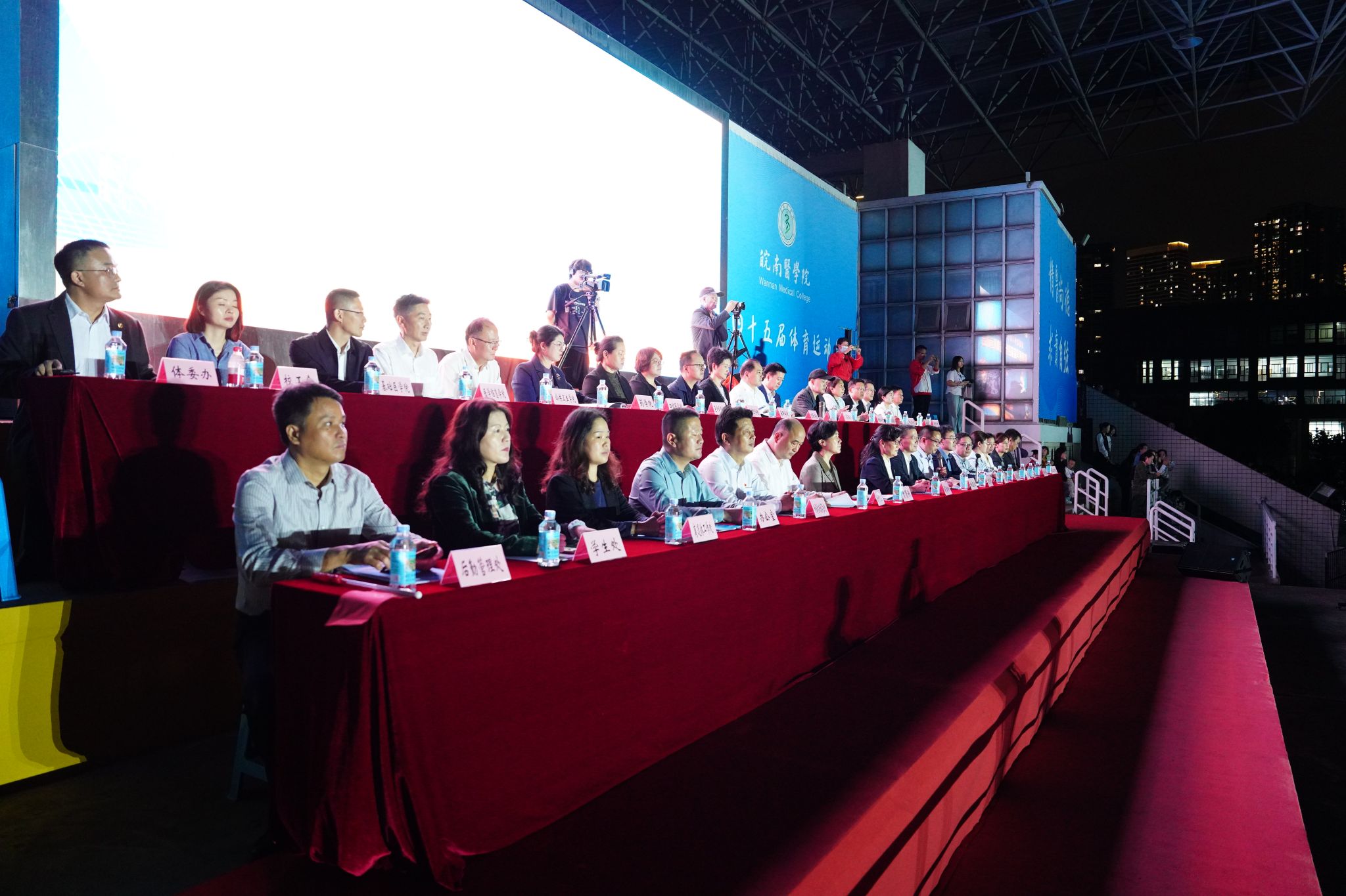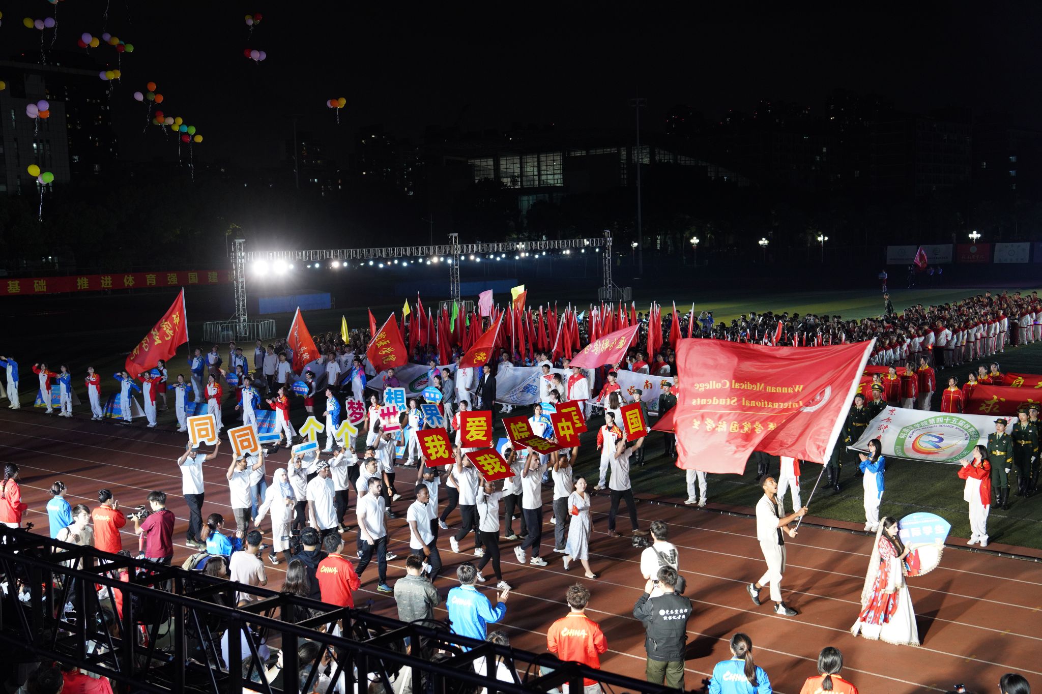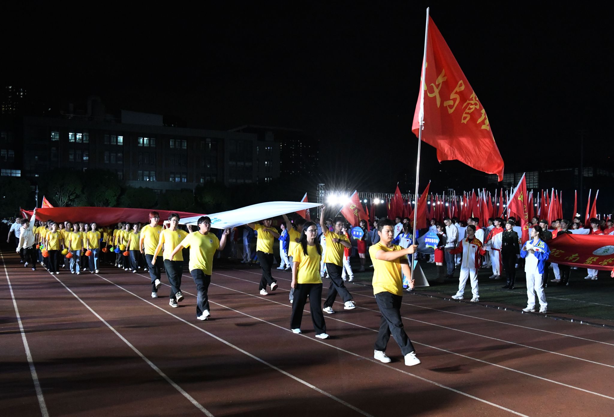 医路逐梦六秩六,运动燃情新征程。10月18日下午7时整,学校第45届体育运动会在运动场隆重开幕。校领导夏劲松、姚应水、贾贤燕、文育锋出席开幕式,附属皖南康复医院、附属北京安定医院芜湖医院有关负责人,运动会组委会成员,裁判员,运动员,学生代表参加开幕式。开幕式由副院长文育锋主持。