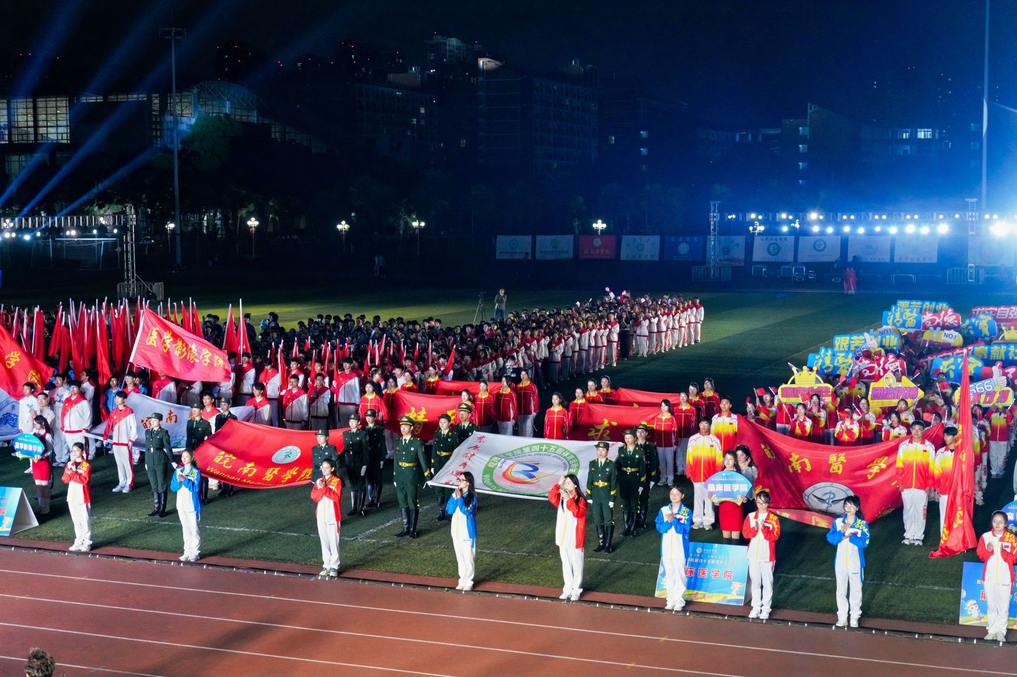 党委副书记、院长姚应水致开幕词。他首先代表学校为筹备运动会的师生医护员工表示衷心的感谢,向全体运动员、裁判员和工作人员致以诚挚的问候。姚应水指出,国运兴则体育兴、国家强则体育强。学校一直重视体育工作,持续深化体育课程教学俱乐部制改革,体育工作蓬勃发展,竞技体育成绩优异。希望全体师生坚持顽强拼搏,争竞技的冠军;尊重比赛规则,争道德的冠军;弘扬体育精神,争风格的冠军,将从体育中获得的顽强拼搏精神、矢志奋斗精神、坚持不懈精神,践行在爱国之志、报国之行的实践中,在拥抱学习、拥抱生活、拥抱世界过程中实现身心全面发展、个人成长成才。