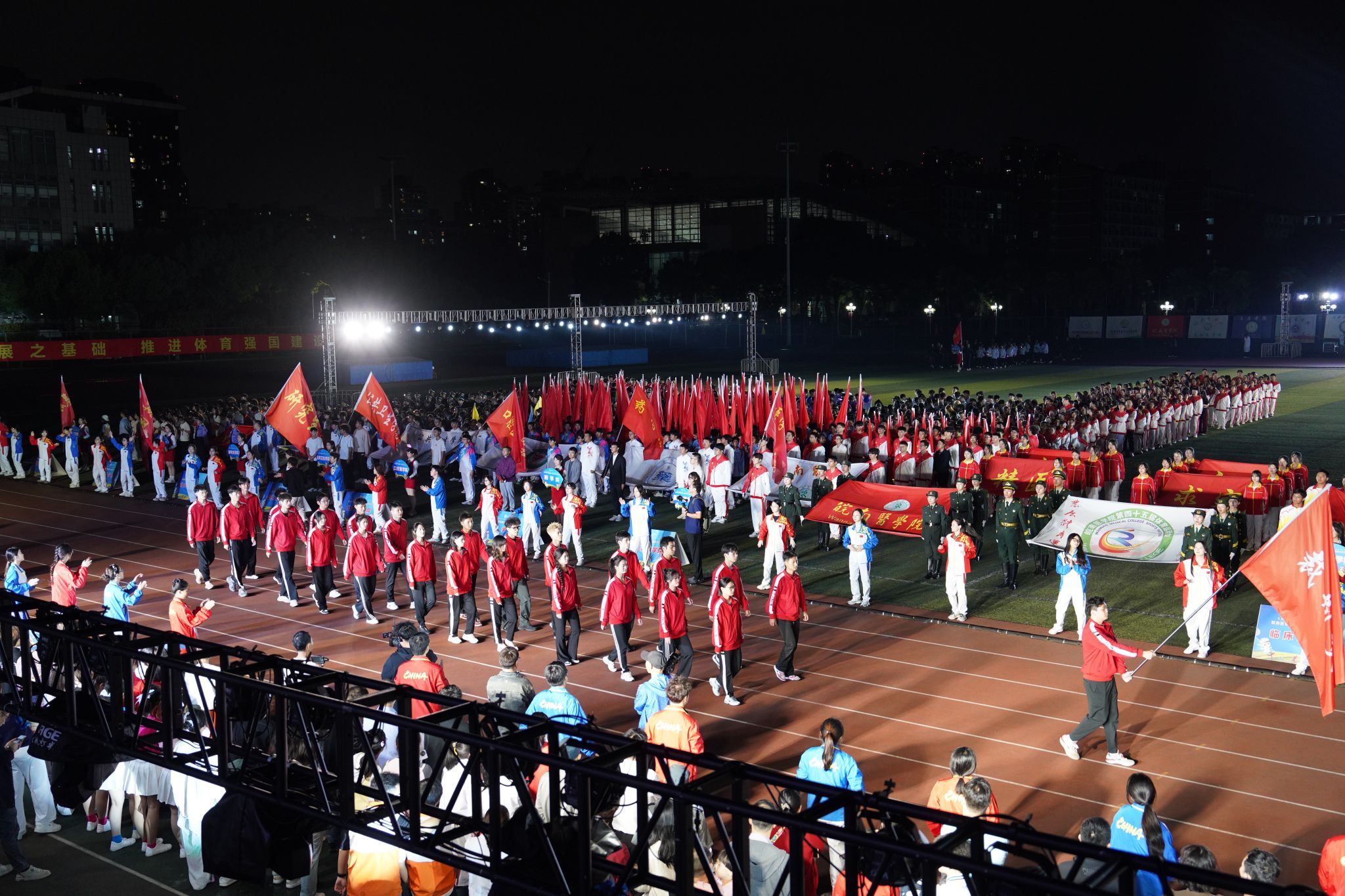 开幕式上,灯光璀璨、彩旗飘飘、活力飞扬、热闹非凡,到处洋溢着青春与欢快的气息。伴随着激昂的运动员进行曲,由校旗会旗队、校训旗队、各运动员代表队和裁判员代表队组成的方阵依次入场。他们精神抖擞、意气风发、步伐矫健、口号嘹亮,彰显了皖医人自强不息、顽强拼搏的精神风貌,赢得全场观众的热烈掌声和欢呼声。